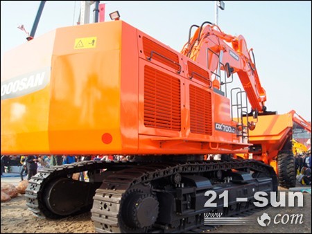 作为中国工程机械行业的领导者之一,斗山在此次展会上推出了一款“巨无霸”——DX700LC超大型挖掘机,聚集了超高人气,吸引了众多眼球!新型DX700LC是斗山挖掘机系列中的超大机型,拥有杰出的工作性能、作业效率和整机可靠性。DX700可充分满足重型采矿作业、采石场作业以及各类主要基础建设事业的施工需求。其主要部件采用优化设计,整机性能和燃油效率极佳,耐久性和舒适性大幅提升,完全可以满足中国采矿行业的高标准,从而为客户创造最大价值。DX700具有极佳的作业稳定性和安全性,其长车身设计加上可扩展的行走装置(可延展至最大宽度4米)可满足各种挖掘、提升和装卸作业。同时,为了满足不同的客户需求,DX700LC可选装3种不同长度的动臂&斗杆配置。除此之外,DX700LC的强大发动机确保了澎湃动力的不竭输出,其铲斗挖掘力(36吨)和斗杆挖掘力(29吨)均超过竞争对手的同级别产品。DX700大容量液压系统大幅提高了作业效率,其每小时作业量可达723m3。
