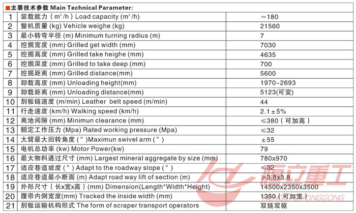 履带式挖掘装载机(俗名:扒渣机)是一种连续生产的高效率出矿设备,主要用于矿山岩巷、半煤岩巷掘进,也可以用于引水洞、铁路隧道施工和国防洞窟施工中的装载作业,大大提高掘进速度,可适用于大型断面,坡度+20°~-32°的巷道。
