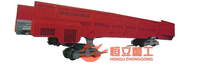 梭式矿车式地下煤矿岩巷、非煤矿主巷、非煤矿主巷掘进时的高效出渣设备,同时也可作为大型储矸设备,现已有从4-40立方等多个规格。它主要由装有运输机的槽形车厢和行走部分组成,车体放在两个转向架上,在车厢底板装有刮板运输机,采用电动动力将矸石从车厢的装渣端装人,连续转动刮板运输机自动将矸石移动到卸载端,使整个矿车装满,开启运输机即可将矸石自动卸下。