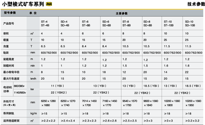 梭式矿车的主要特点:即可单车使用,也能若干台结成列运行;容积大,能连续装载,自动卸渣;既能承担运矸设备,又可作为大的储仓使用。