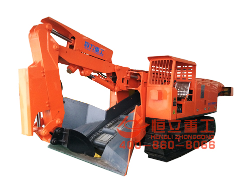 履带式挖掘装载机(俗名:扒渣机)是一种连续生产的高效率出矿设备,主要用于矿山岩巷、半煤岩巷掘进,也可以用于引水洞、铁路隧道施工和国防洞窟施工中的装载作业,可适用于断面为2.4X2.4米以上,坡度±15°的巷道。