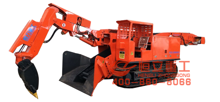 履带式挖掘装载机(俗名:扒渣机)是一种连续生产的高效率出矿设备,主要用于矿山岩巷、半煤岩巷掘进,也可以用于引水洞、铁路隧道施工和国防洞窟施工中的装载作业,可适用于小型断面,坡度+20°~-32°的巷道。